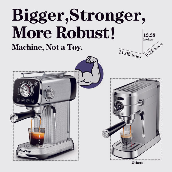 [Compact and Stylish Design]The size is 6.3*13*14.17 in, compact design make it easy to place in both the home and office; Stainless steel casing, styled design, equipped with a rotatable Milk Frother Steam Wand which you can texture creamy, rich microfoam milk to create amazing milk foam art and enhance the flavor of your brews, the 34 oz water tank allows you to brew multiple cups, which is detachable for easy refilling; and the drip tray is easy cleaning. It is the best choice for coffee lovers.